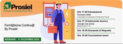 In particolare, il prossimo giovedì 11 dicembre 2025 alle ore 17, in un Webinar, si affronteranno i punti salienti della sesta edizione della nuova norma CEI 11-27, grazie al contributo qualificato del dott. Giorgio De Donà, membro del CEI – CT 78, uno dei “padri” della norma in oggetto.